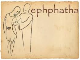 “After he took him aside, away from the crowd, Jesus put his fingers into the man\’s ears. Then he spit and touched the man\’s tongue. He looked up to heaven and with a deep sigh said: “Ephphatha!”. At this, the man\’s ears were opened, his tongue was loosened and he began to speak plainly”.